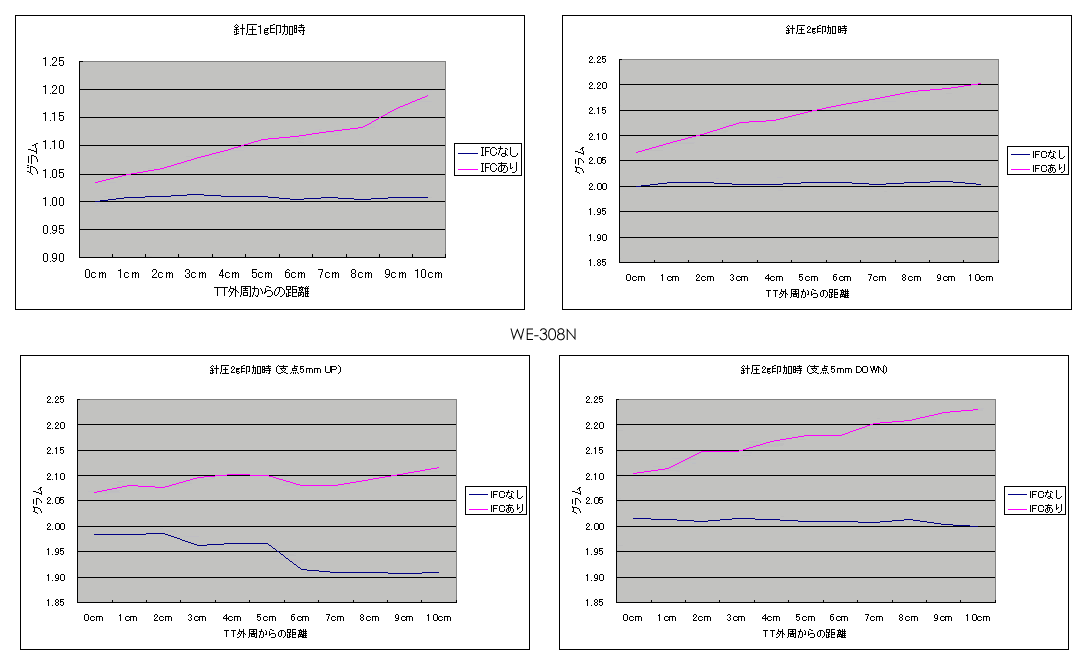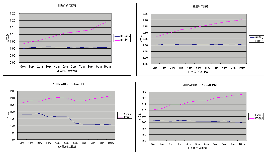 ・ターンテーブル外周ギリギリのところに針圧計のプローブを設置