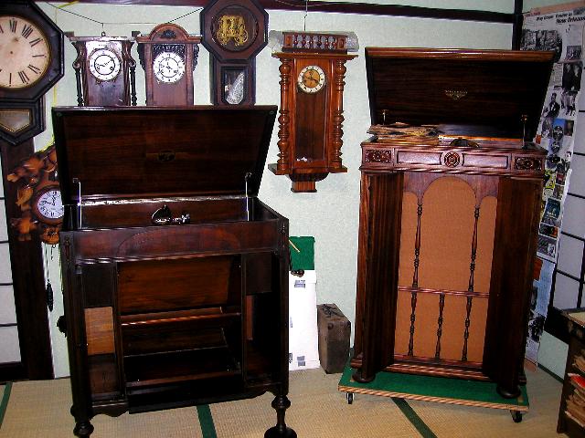 ご紹介したものは見せてもらったコレクションのほんの一部です。卓上型なども多数お持ちです。蓄音機に関して妥協はしない方なので安心してお薦めしました。
